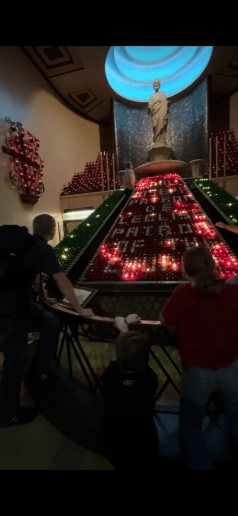 I would highly recommend setting aside a good amount of time in the candle room of the Oratory to pray at each station and light a candle.